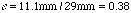 メスシリンダの径が 29mm であることから、径の比は